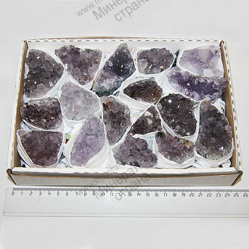 Аметистовые друзы в коробках. Бразилия. Эти друзы продаются коробками. Средний вес коробки около 3-х кг.