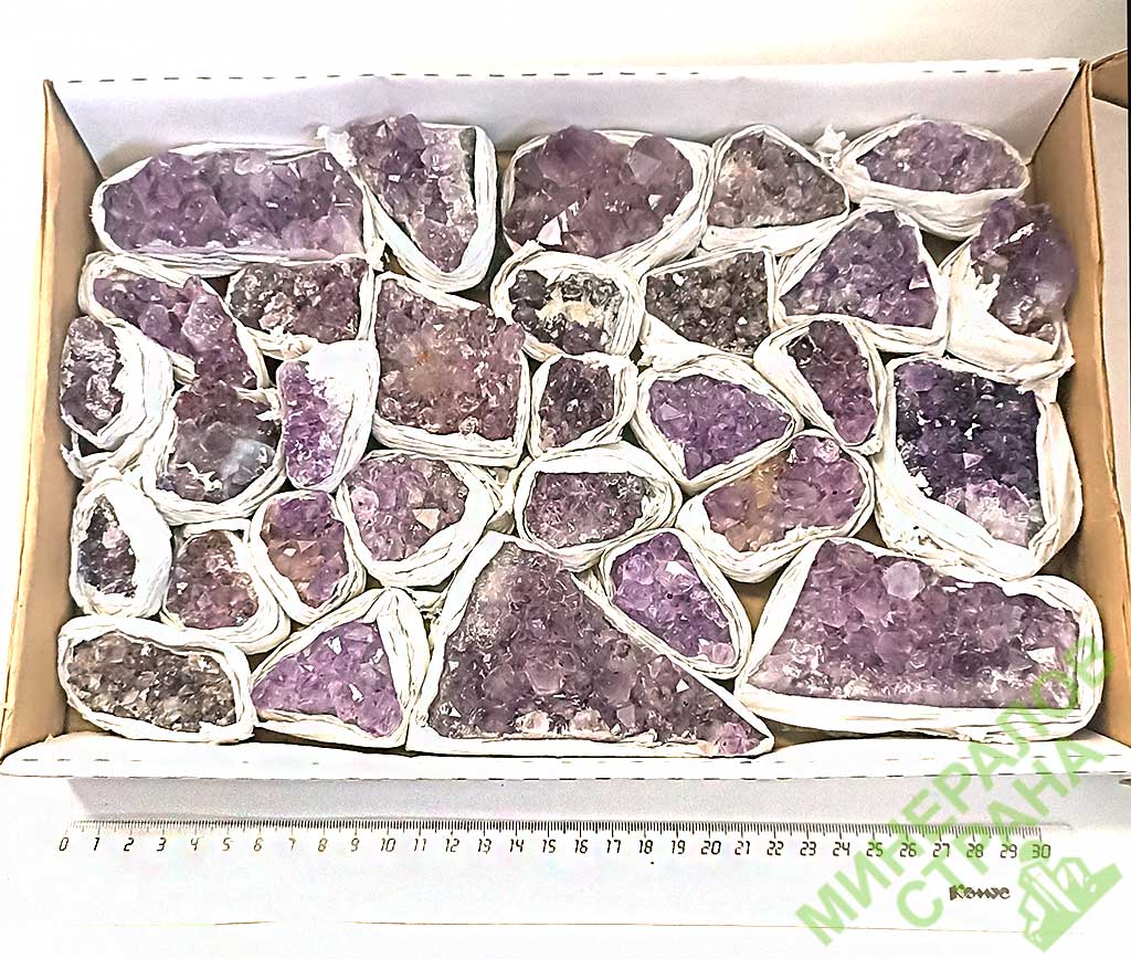 Аметистовые друзы в большой картонной коробке.Бразилия.Вес коробки на фото 2,770 кг.Вес коробок может отличаться от указанного.Эти друзы продаются коробками.