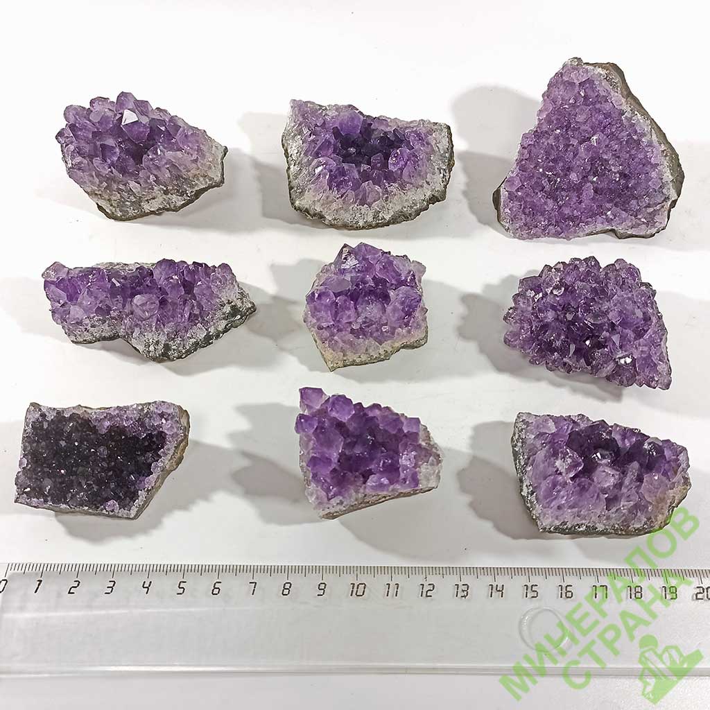 Аметистовые друзы мелкие, россыпью 5-7 см.
