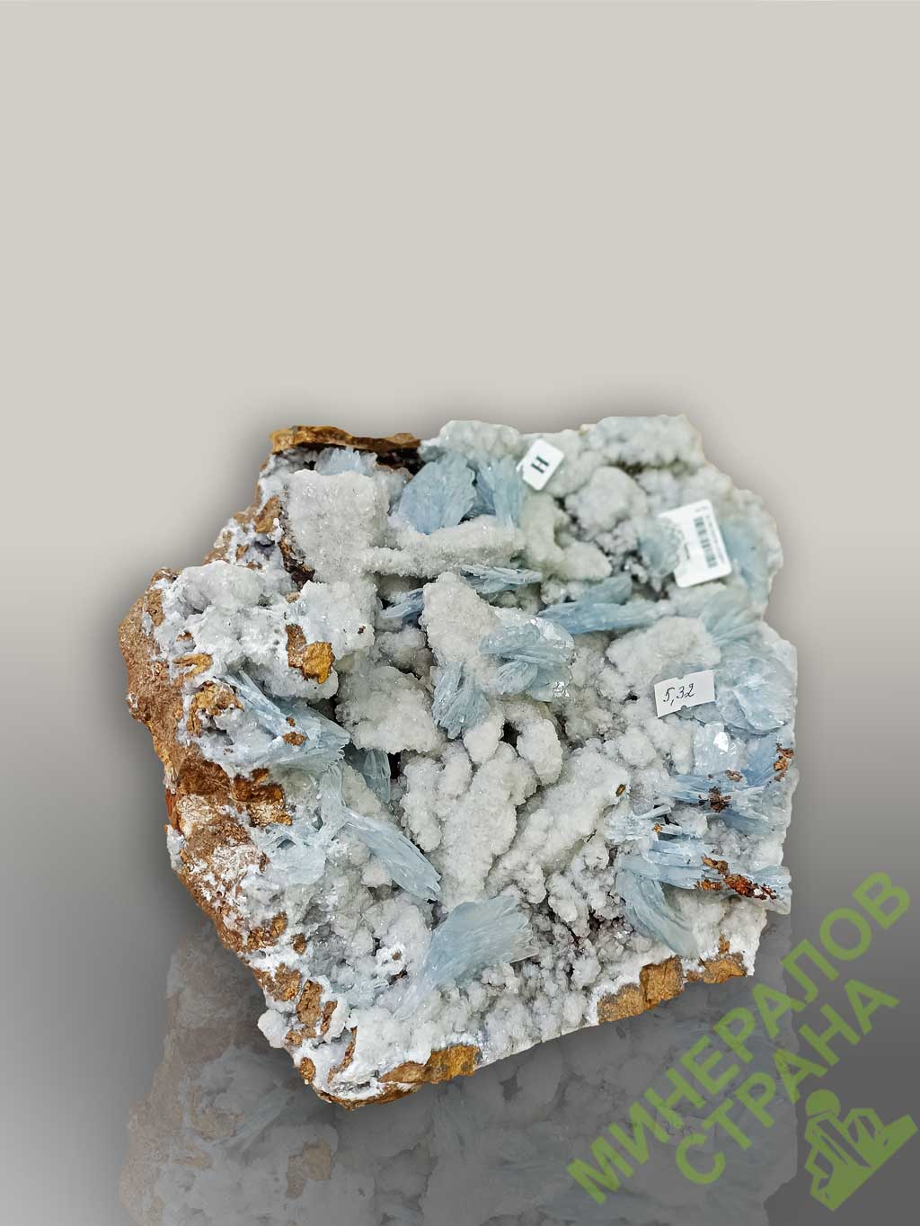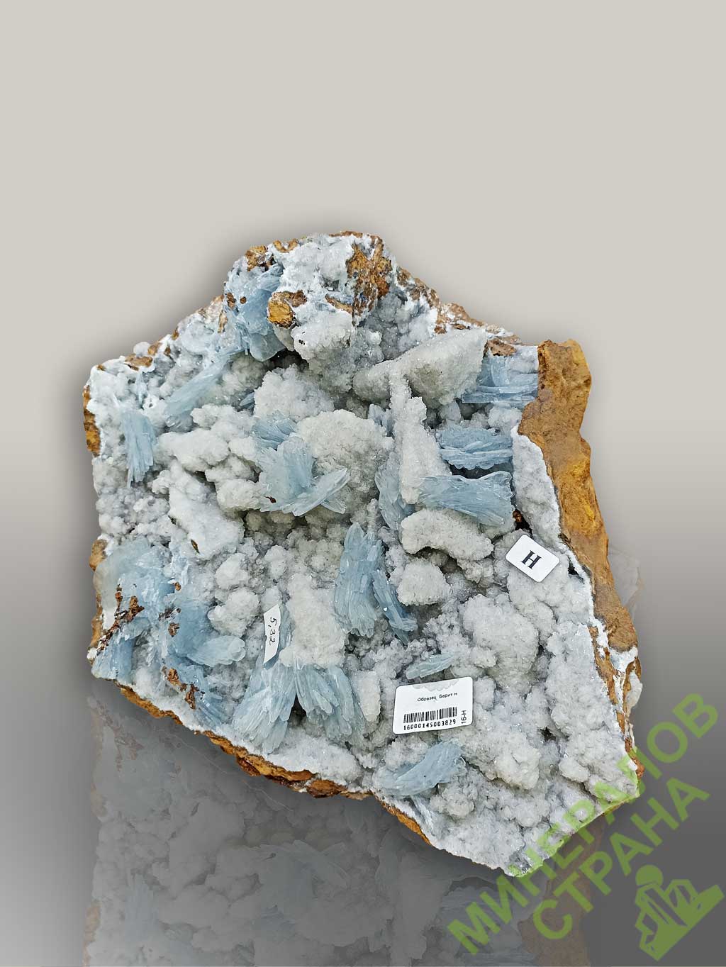Образец голубого барита.Марокко.Вес этого образца 5,32 кг.Размер 29х23х13 см.