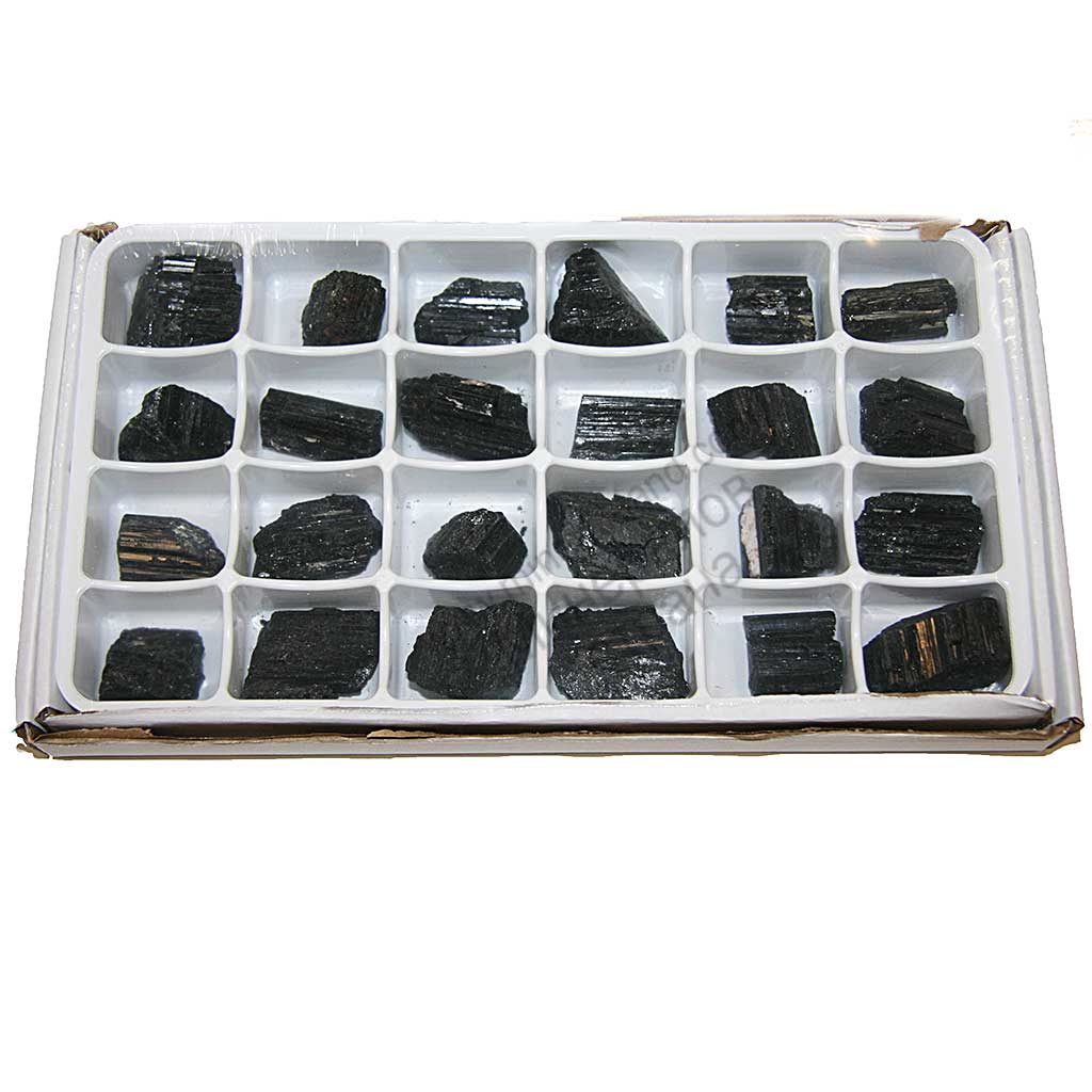 Образцы турмалина чёрного в коробке, 24 штуки.Бразилия.Вес этой коробки 0,710 кг.Вес коробок может отличаться.Эти образцы продаются коробками.