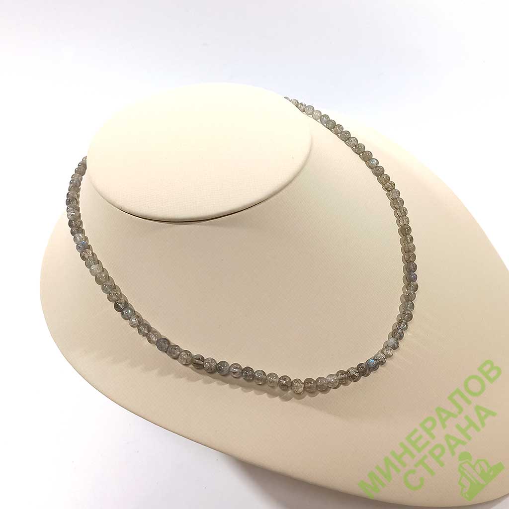 Бусы из лабрадорита. Шарик 4 мм. Основа - леска. Латунный замок с резьбой. Длина нитки примерно от 44 см.