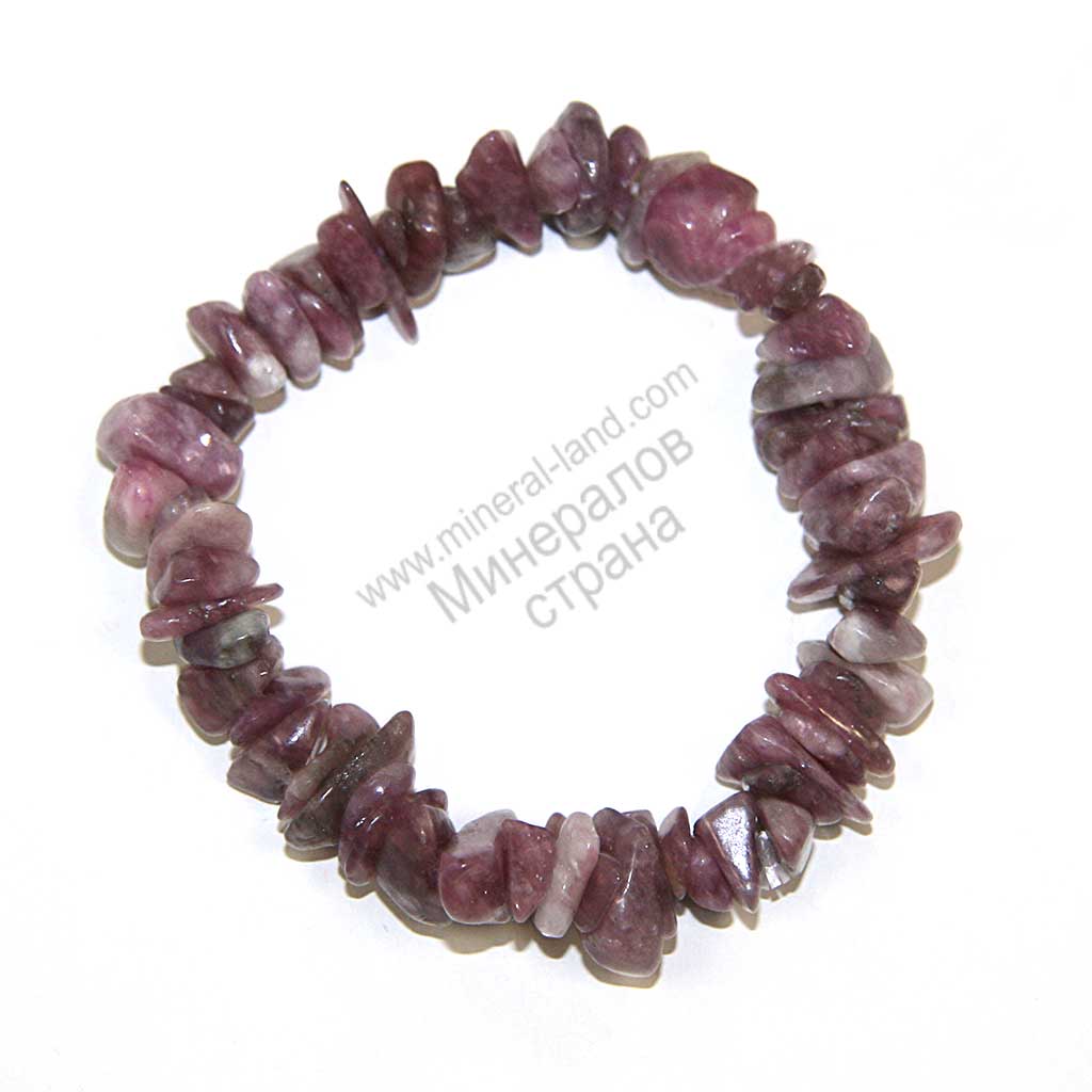 Браслет из лепидолита на резинке, галтовка каменной крошки неправильной формы. Размер бусины сильно варьируется и составляет примерно 4х10мм.