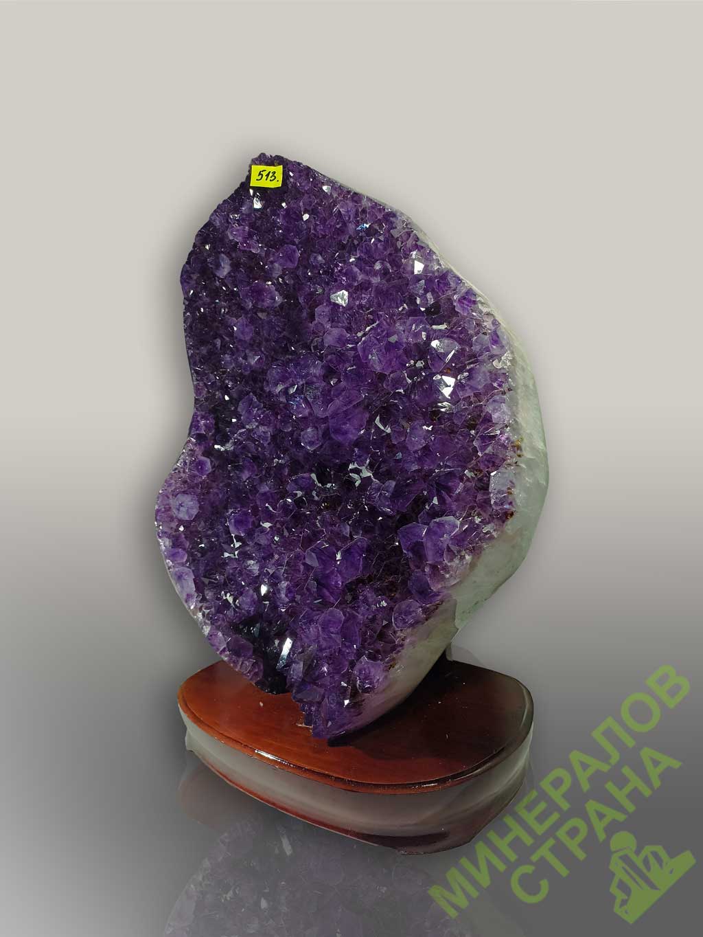 Образец № 513.Аметистовая друза на подставке.Вес 17,42 кг.Высота с подставкой ~47 см.Имеются мелкие вкрапления кальцита.