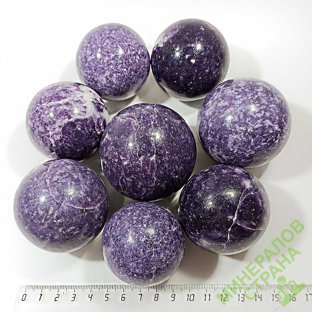 Шары из лепидолита. Размер от 50 до 65 мм.