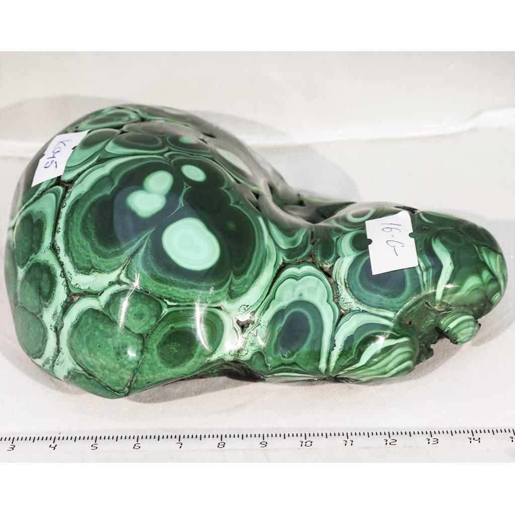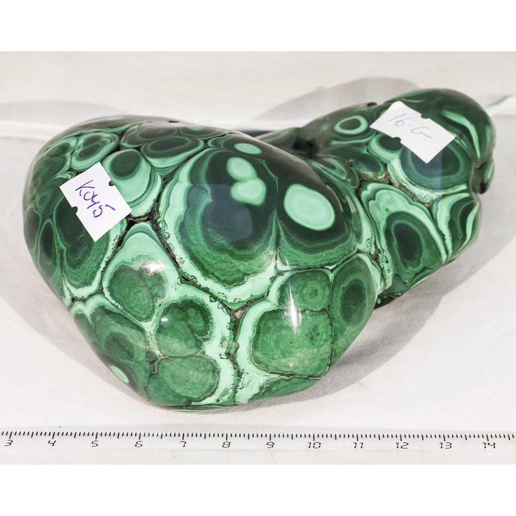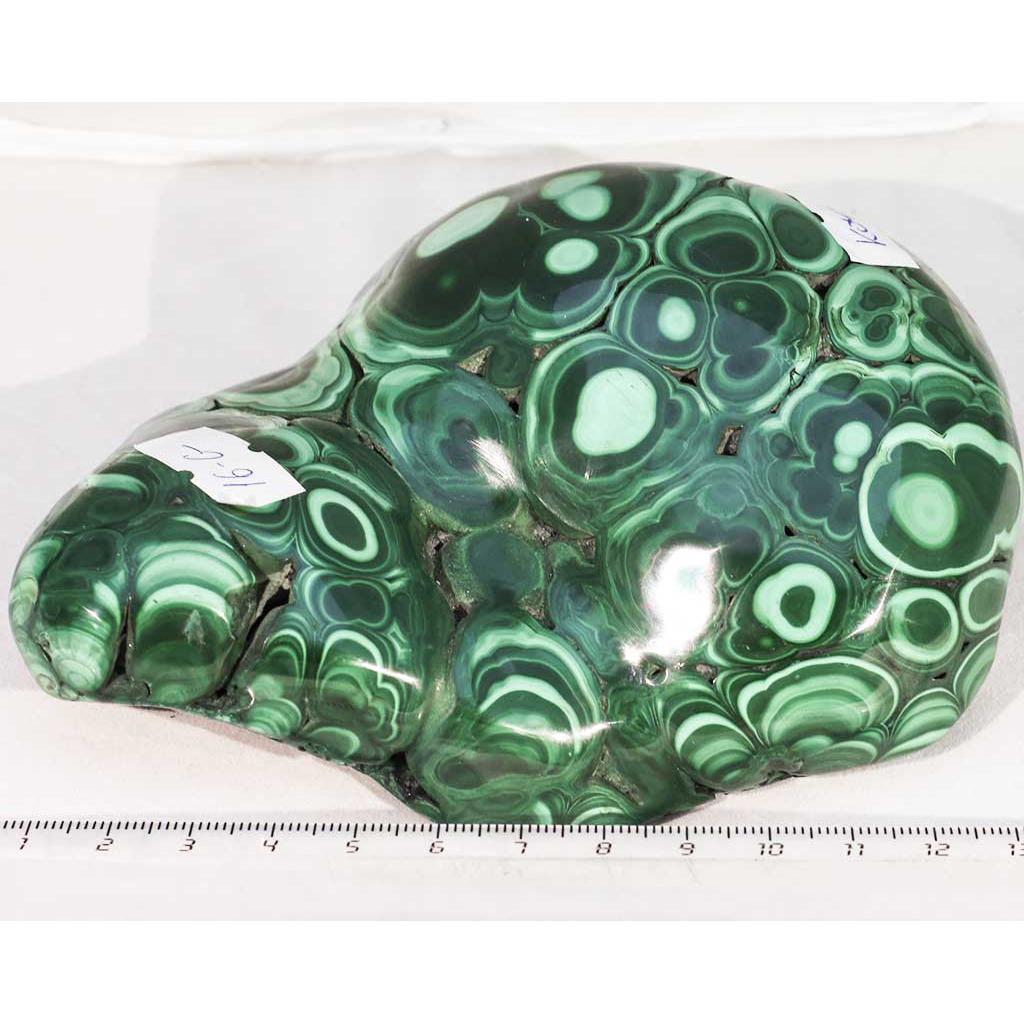 Малахит полированный. Образец № K 045. Демократическая Республика Конго. Артикул 16-G. Вес данного образца 1,11 кг. Размеры 13х11,5 см.