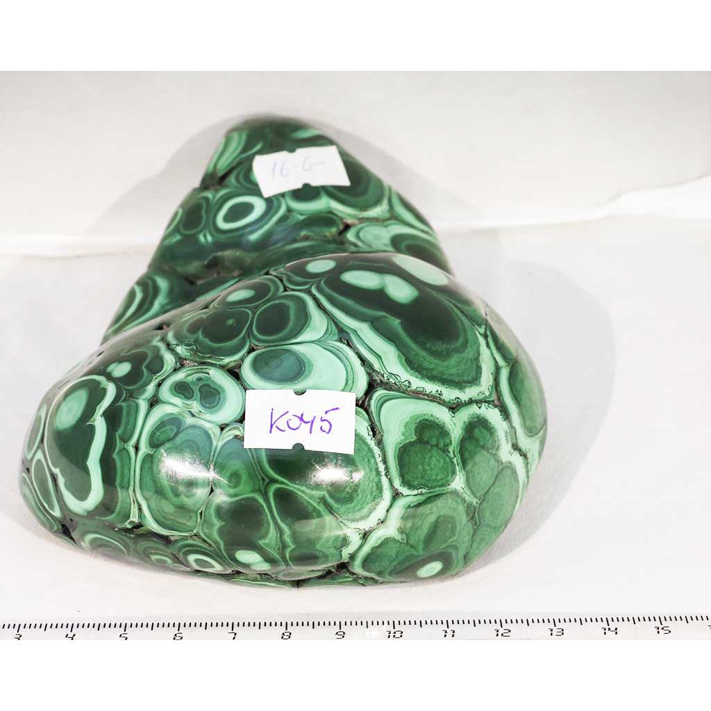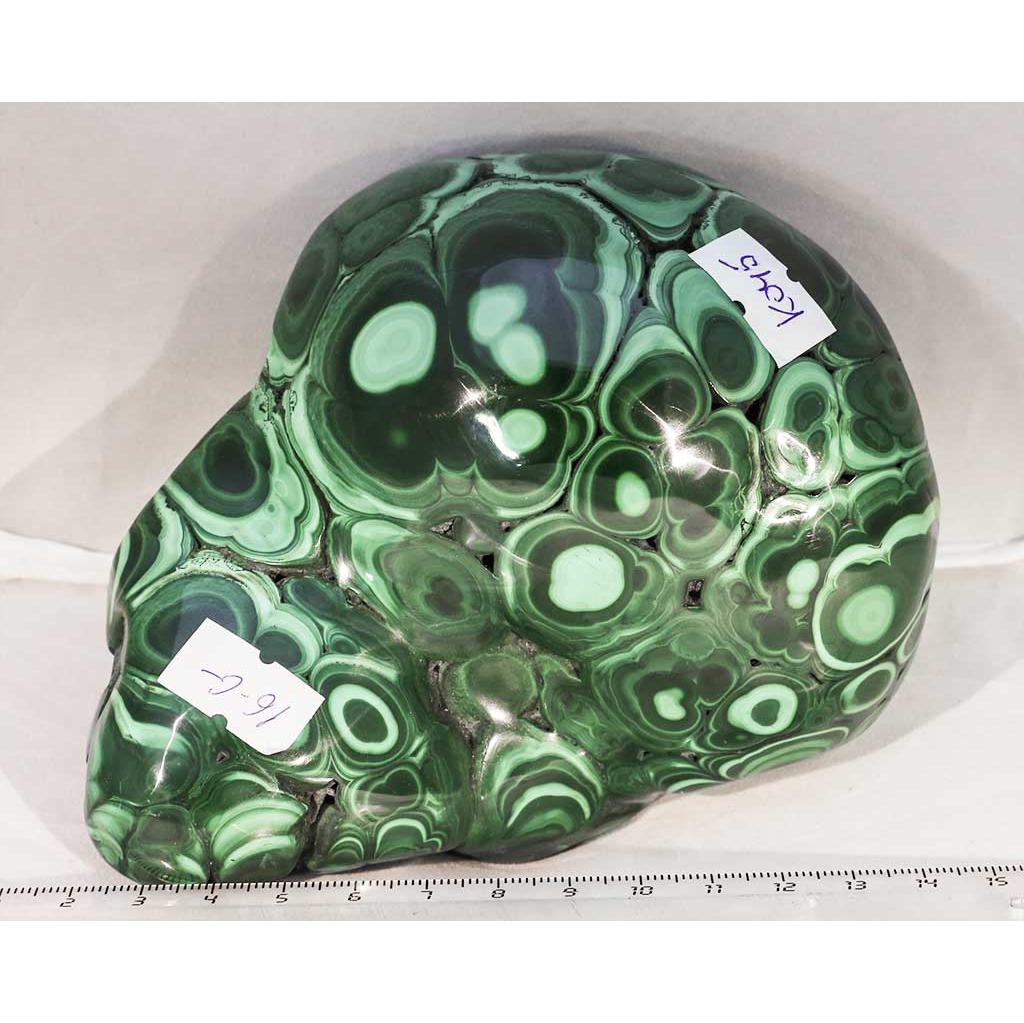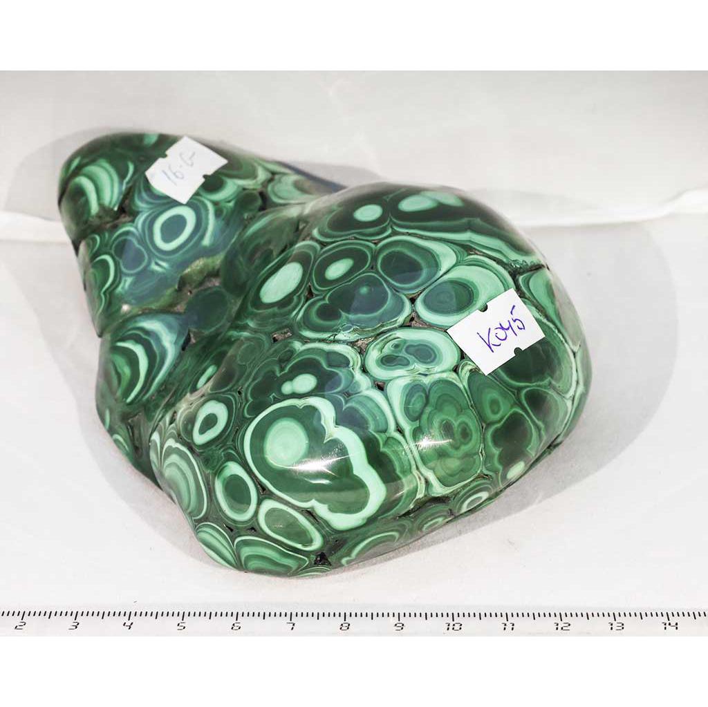 Малахит полированный. Образец № K 045. Демократическая Республика Конго. Артикул 16-G. Вес данного образца 1,11 кг. Размеры 13х11,5 см.