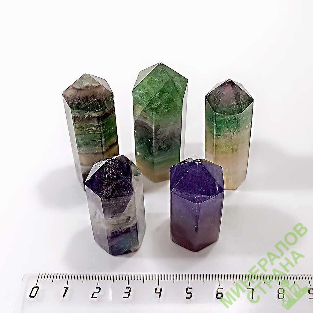 Флюорит. Кристалл со спиленным основанием, в форме заостренных столбиков-кристаллов в среднем от 5 до 15 см.