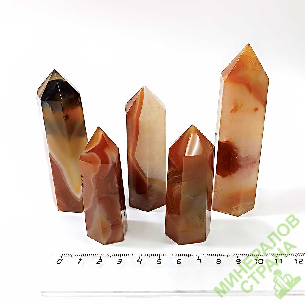 Агат красный. Кристалл со спиленным основанием, в форме заостренных столбиков-кристаллов в среднем от 5 до 15 см.