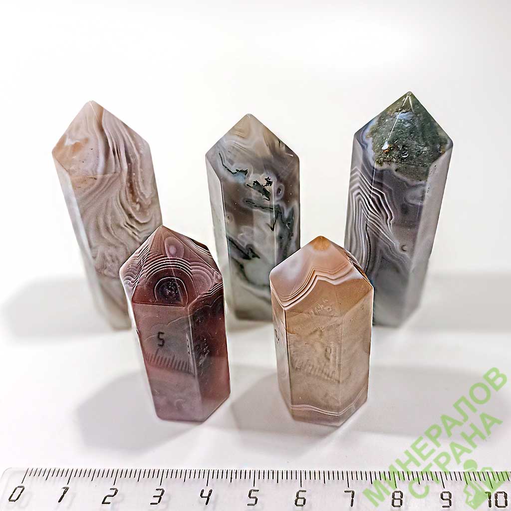 Агат серый. Кристалл со спиленным основанием, в форме заостренных столбиков-кристаллов в среднем от 5 до 15 см.