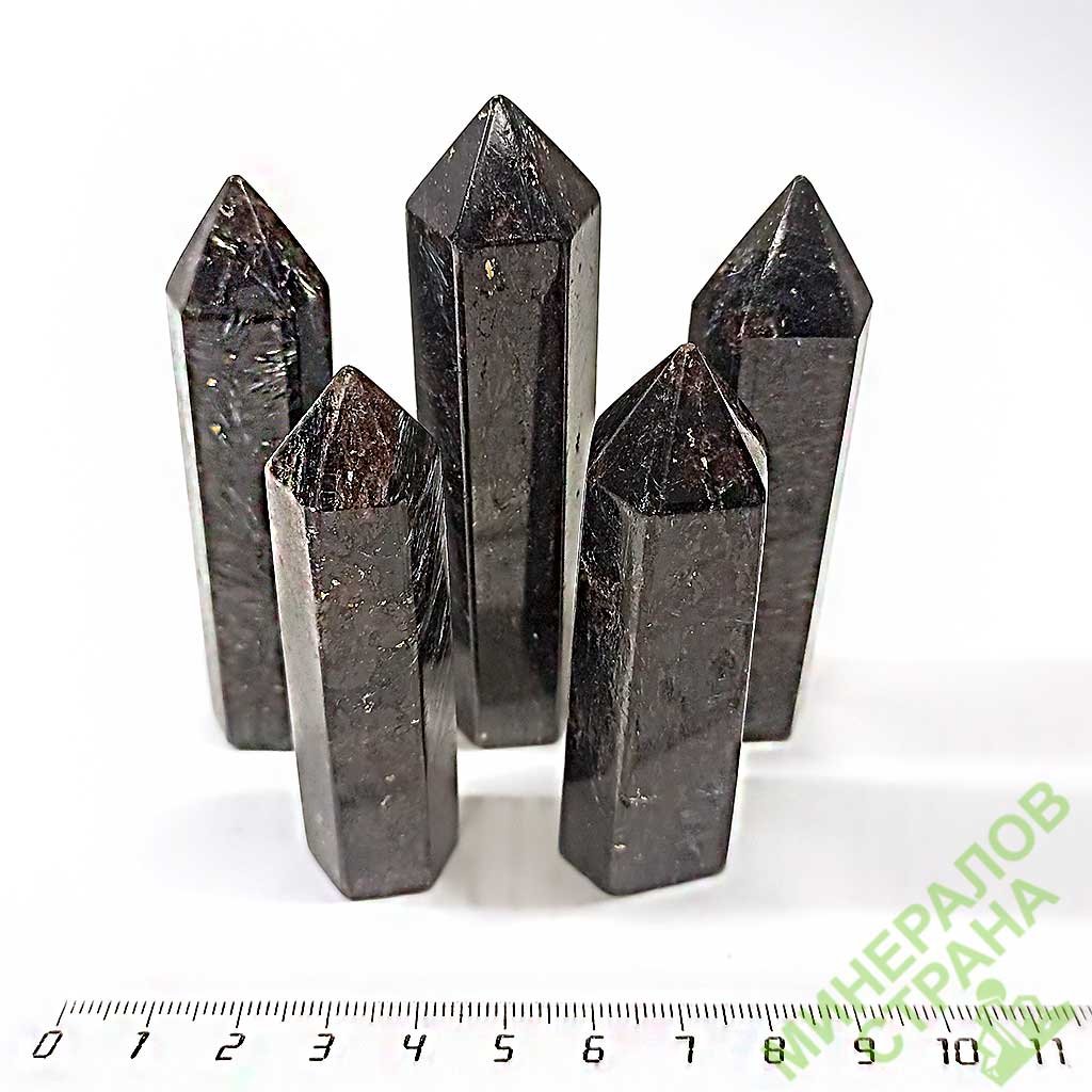Арфведсонит. Кристалл со спиленным основанием, в форме заостренных столбиков-кристаллов в среднем от 5 до 15 см.