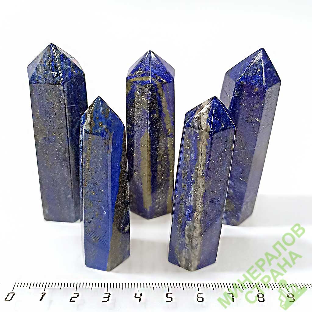 Лазурит. Кристалл со спиленным основанием, в форме заостренных столбиков-кристаллов в среднем от 5 до 15 см.