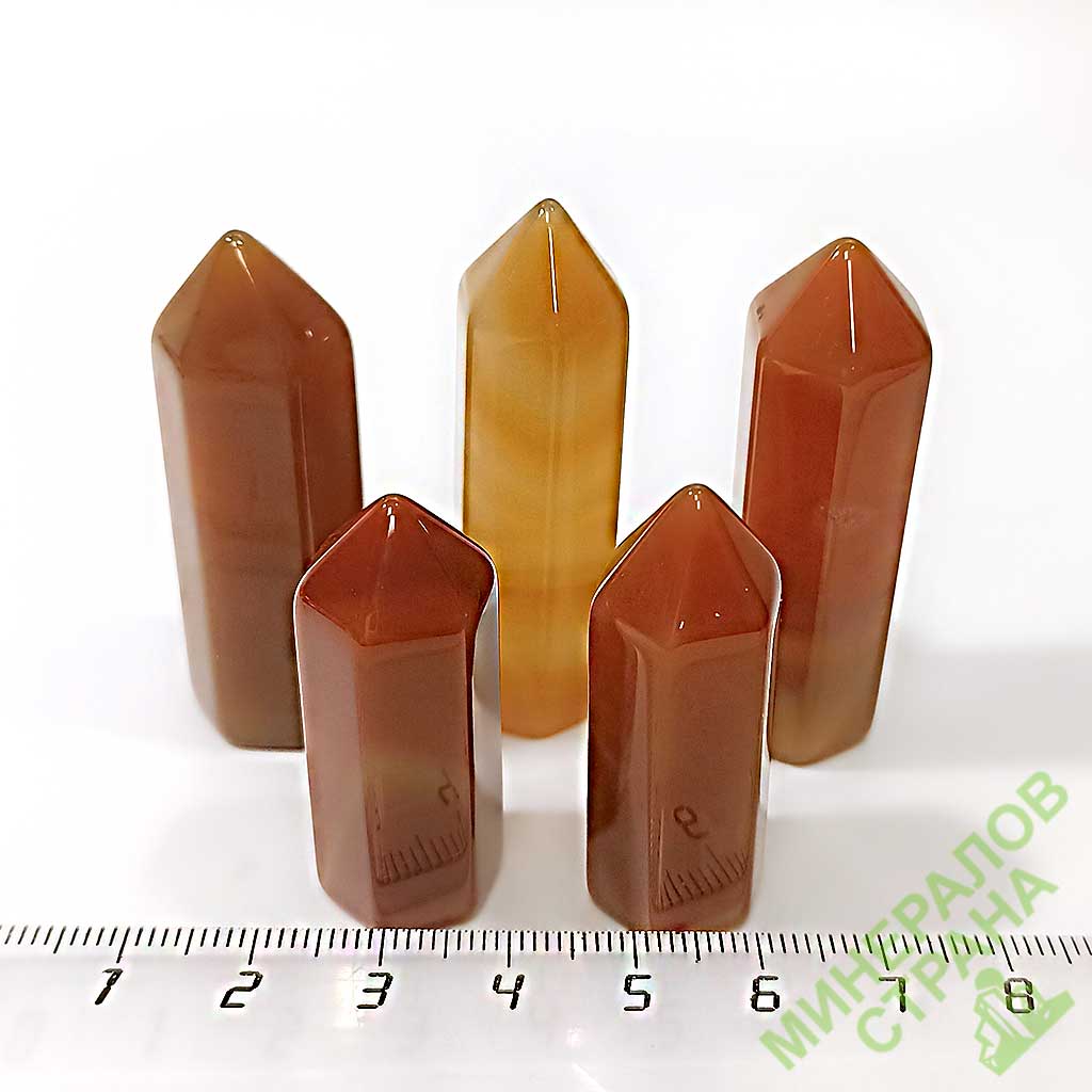 Сердолик. Кристалл со спиленным основанием, в форме заостренных столбиков-кристаллов в среднем от 5 до 15 см.