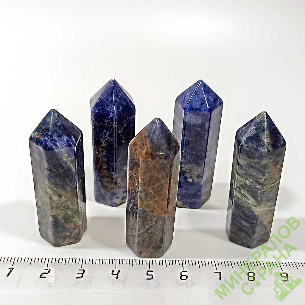 Содалит. Кристалл со спиленным основанием, в форме заостренных столбиков-кристаллов в среднем от 5 до 15 см.