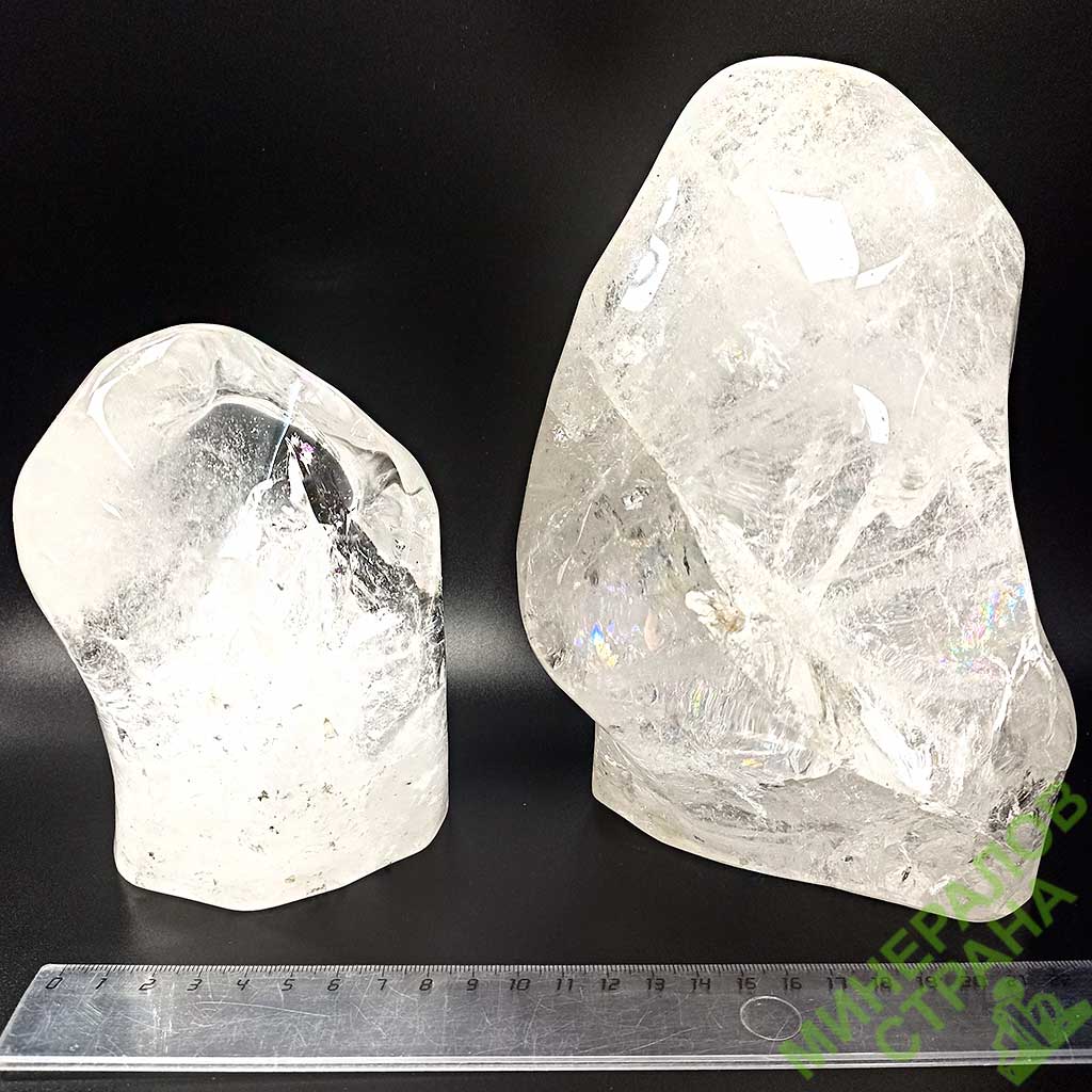 Полированные образцы горного хрусталя со спиленным основанием, крупные.Бразилия.Вес образцов, представленных на фото 1,37 кг и 3,44 кг.