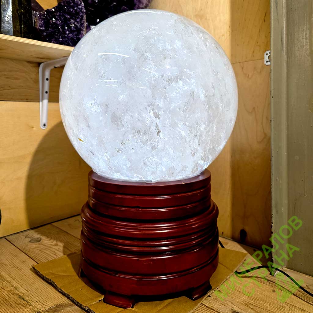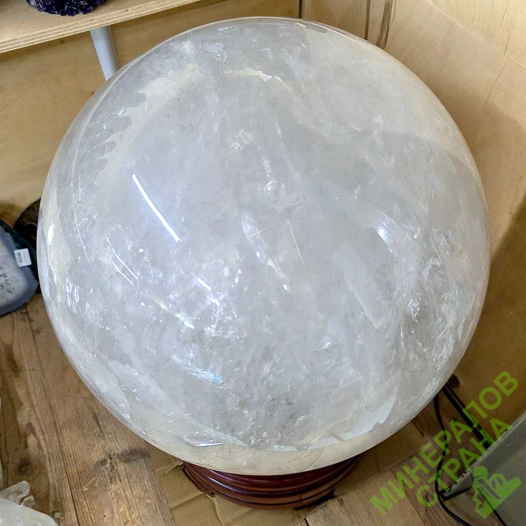 Образец Ш-48. Шар из горного хрусталя на деревянной подставке. Диаметр примерно 38,2 см. Вес 75 кг.Стоимость данного образца составляет 1 600 000 руб.