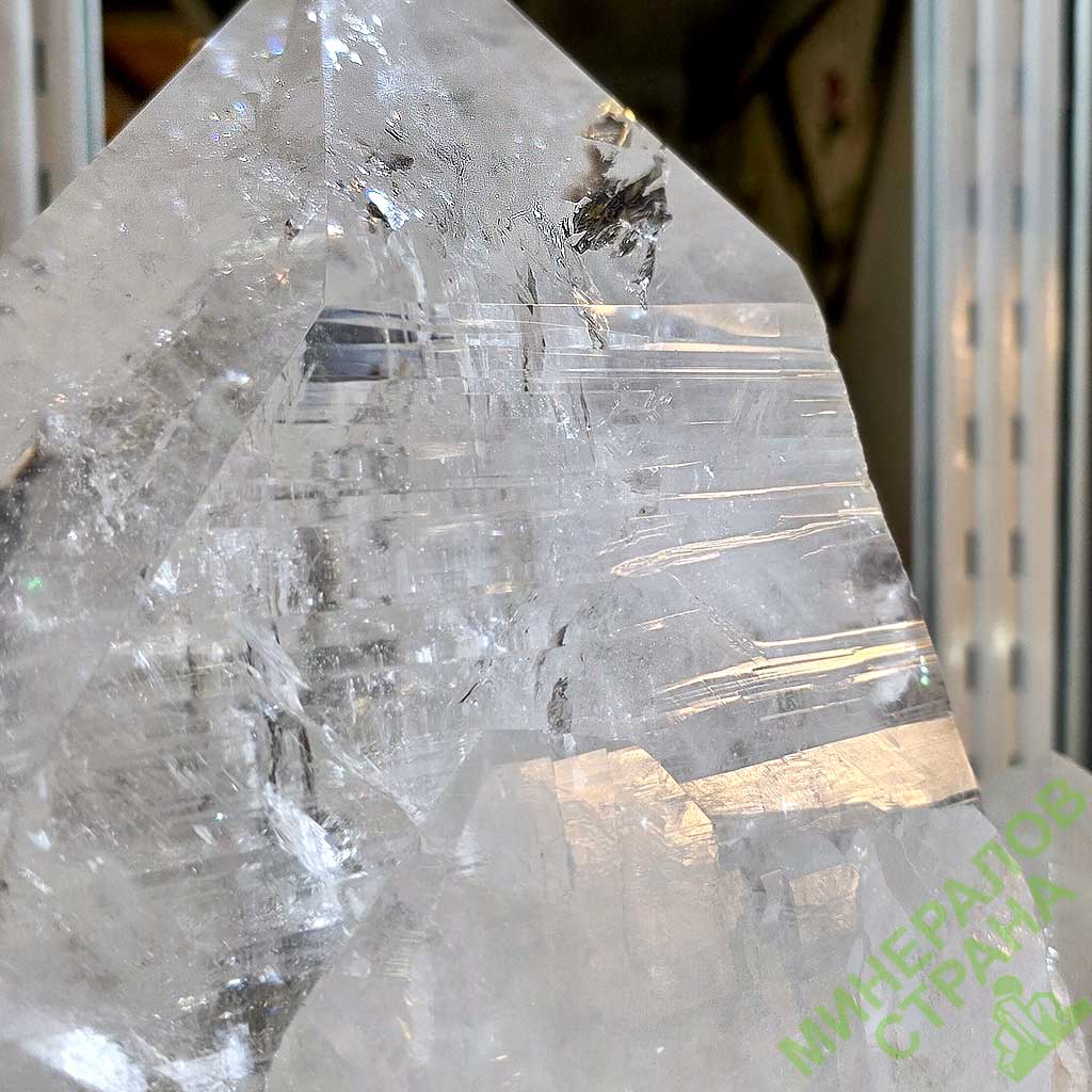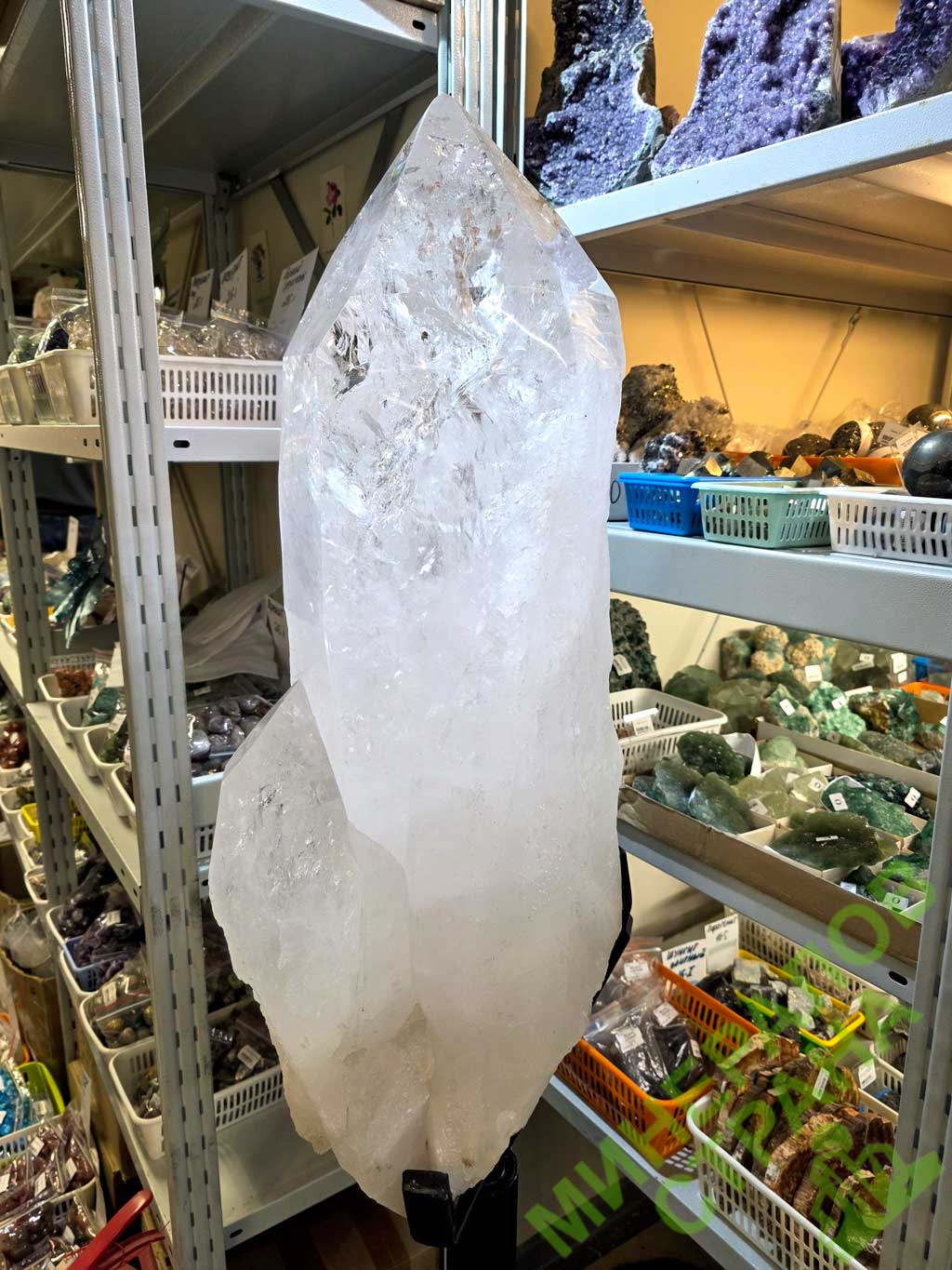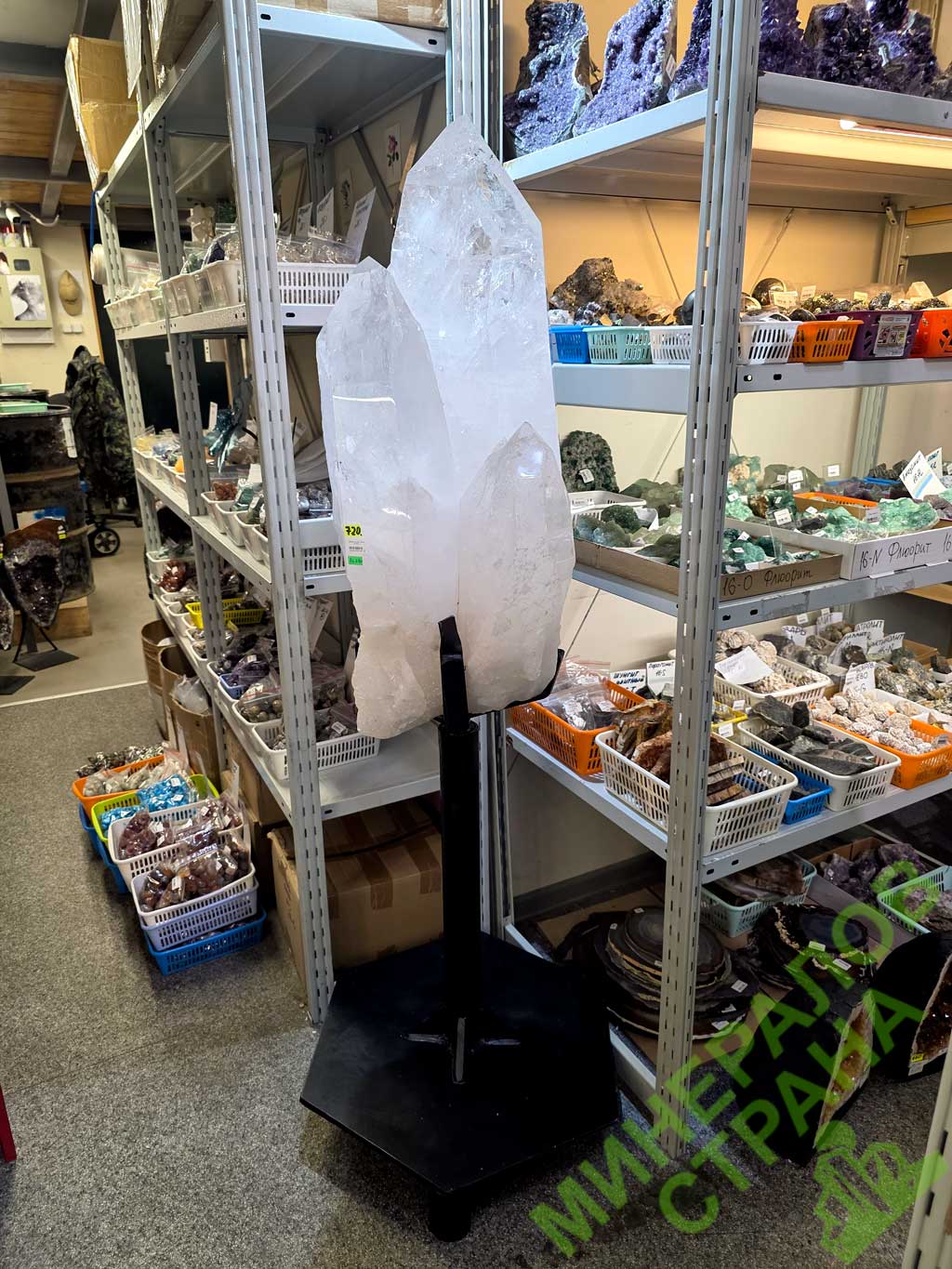 Образец № 720. Горный хрусталь кристалл (Лемурийский) на металлической подставке, вес данного образца 86,6 кг, высота без подставки 81 см, с подставкой 153 см. Стоимость данного образца составляет 1 757 980 руб.