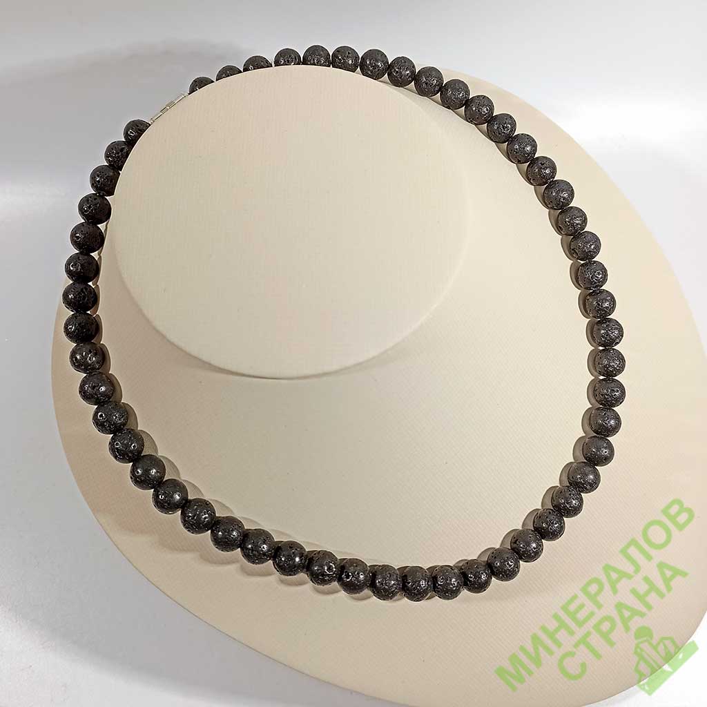 Бусы из лавы. Шарик 8 мм. Основа - леска. Латунный замок с резьбой. Длина нитки примерно от 46 см.