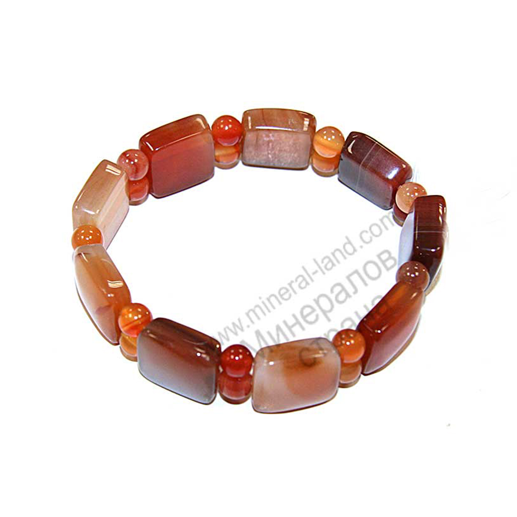 Браслет из красного агата на резинке. Квадрат 15х15 мм через шарик.